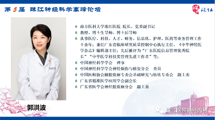 会议伊始南方医科大学珠江医院郭洪波院长对与会的专家及学会领导的到来表示衷心的感谢,同时回顾了珠江医院的光辉历史以及近年取得的骄人成绩,并对王青主任带领下的神经内科所取得的成绩表示了充分肯定,最后祝第五届珠江神经科学高峰论坛圆满成功。