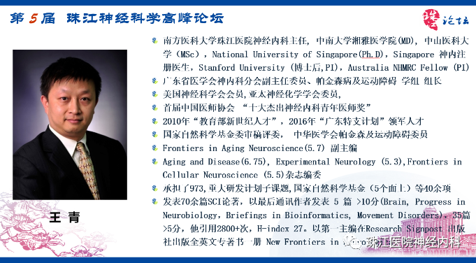 乐卫东教授讲述帕金森病神经炎症-神经免疫异常及机制研究,讲述TNF-α炎性因子、NLPR3等分子如何参与神经炎性反应调节通路,我们了解到了帕金森病免疫和炎性引起细胞损伤机制。