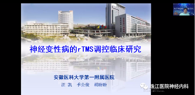 来自安徽医科大学第一附属医院的汪凯教授以“神经变性病的rTMS调控临床现状”为题,对rTMS技术在脑环路调控中的作用、在AD和PD疾病中的神经调控研究、如何选择靶点进行精准化治疗等多方面进行了深入浅出的阐释,此外, 汪教授还指出rTMS技术在治疗神经变性病中的未来研究重点可朝着参数优化方面进行,其次可在解决临床实际问题和长期疗效问题方面进行探索, 最后,汪教授分享了rTMS在AD治疗中长期疗效的临床研究和rTMS在治疗PD的冻结步态疗效研究,加深了参会者对rTMS技术在神经变性疾病神经调控方面的研究的认识,获益良多。