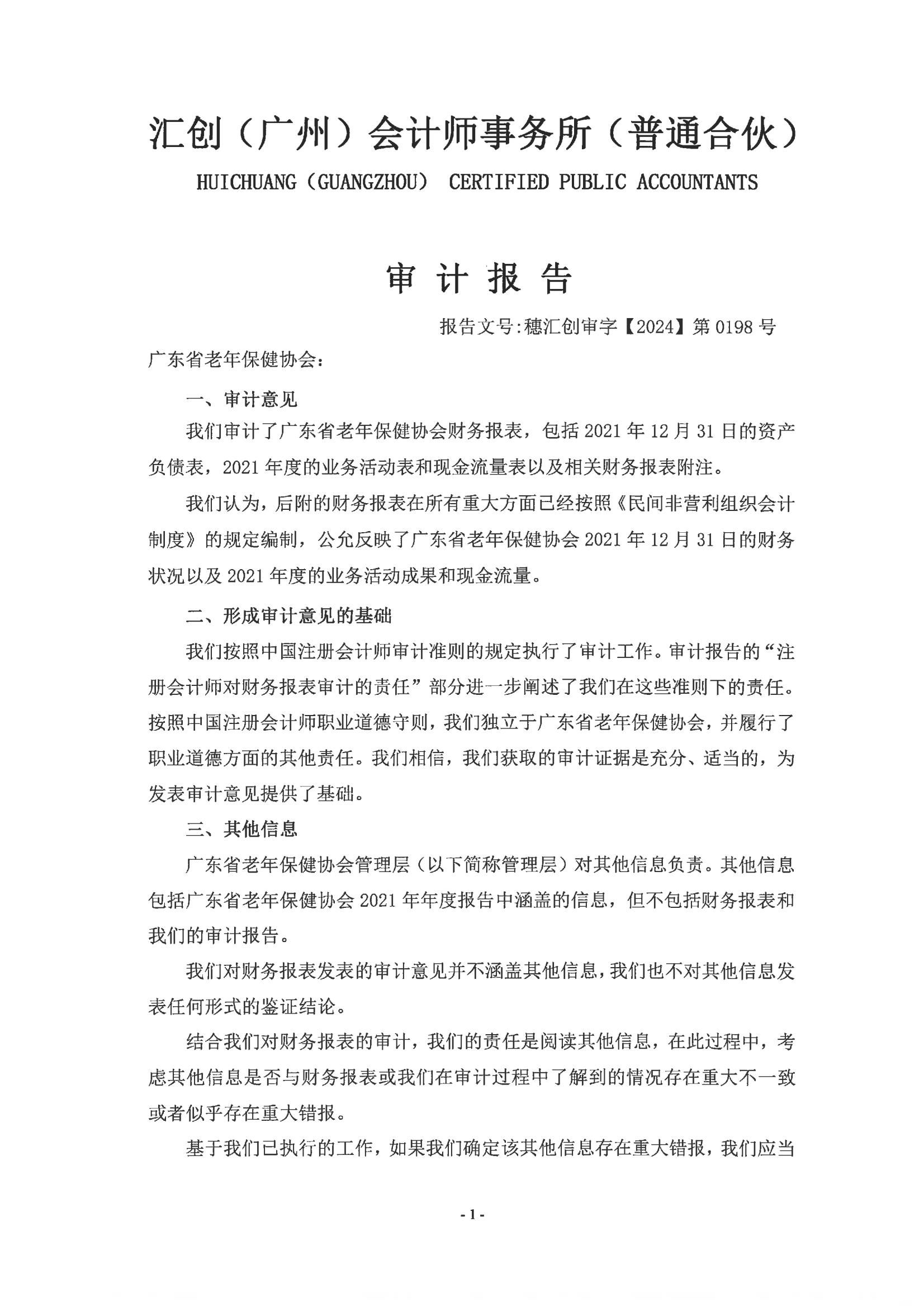 广东省老年保健协会2021年度审计报告