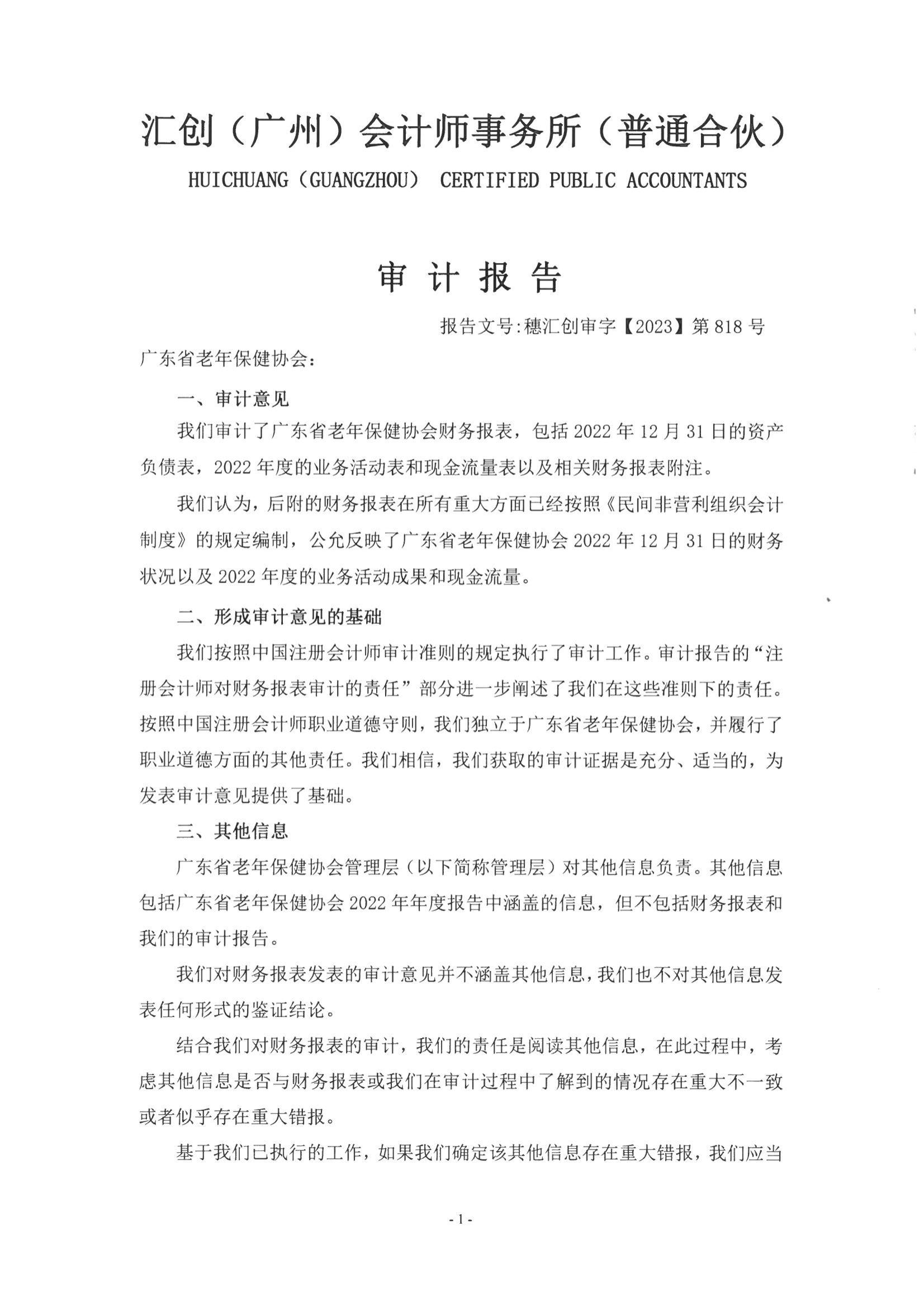广东省老年保健协会2022年度审计报告