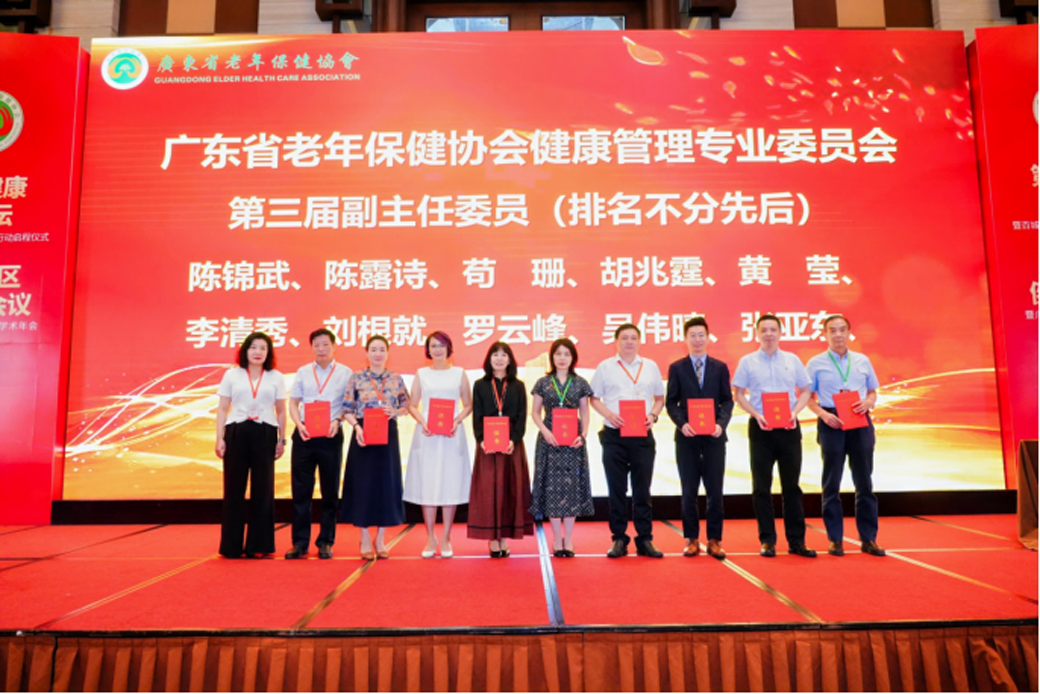会议同期举办广东省老年保健协会健康管理专业委员会第二届专委会换届暨第三届专委会成立大会。现场以无记名投票方式选举产生了新一届的健康管理专委会,南方医科大学南方医院刘莉主任当选为第三届健康管理专业委员会主任委员,中山大学孙逸仙纪念医院陈锦武主任、佛山市第一人民医院陈露诗主任、广东省第二人民医院苟珊主任、南方医科大学第三附属医院胡兆霆主任、东莞市人民医院黄莹主任、广州医科大学附属第一医院李清秀主任、暨南大学附属第六医院(东莞市东部中心医院)党委书记刘根就、南方医科大学珠江医院罗云峰主任、深圳市人民医院吴伟晴主任、中山大学附属第一医院南沙院区张亚东主任当选副主任委员,同时选举22名专家为常务委员。