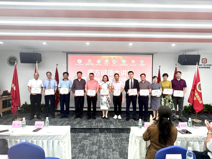 会上,南方医科大学南方医院健康管理中心党总支书、广东省老年保健协会会长周光清教授为南方健康大讲堂第一批专家团成员颁发聘书。广东多对多物联集团董事长、美国斯坦福大学医学院博士后岑自健教授,南方医科大学南方医院许乙凯教授,南方医科大学消化疾病研究所张亚历教授,中山大学附属第一医院华赟鹏教授,南方医科大学南方医院梁卫江教授,南方医科大学南方医院林跃萍教授,原南部战区总医院/现和佑国际医院谢志泉教授,广东省第二人民医院徐谷根教授,南方医科大学珠江医院俞金龙教授,广州市荔湾中心医院袁崇昊教授,广东省老年保健协会副会长兼医康养数智化专业委员会主任、广东多对多物联集团总裁赖正福正式受聘加入南方健康大讲堂专家团,落实健康中国“防大病、管慢病、促健康”行动,为行业高质量发展分享专业经验、应用技术、发展成果,为人类健康事业而奋斗。