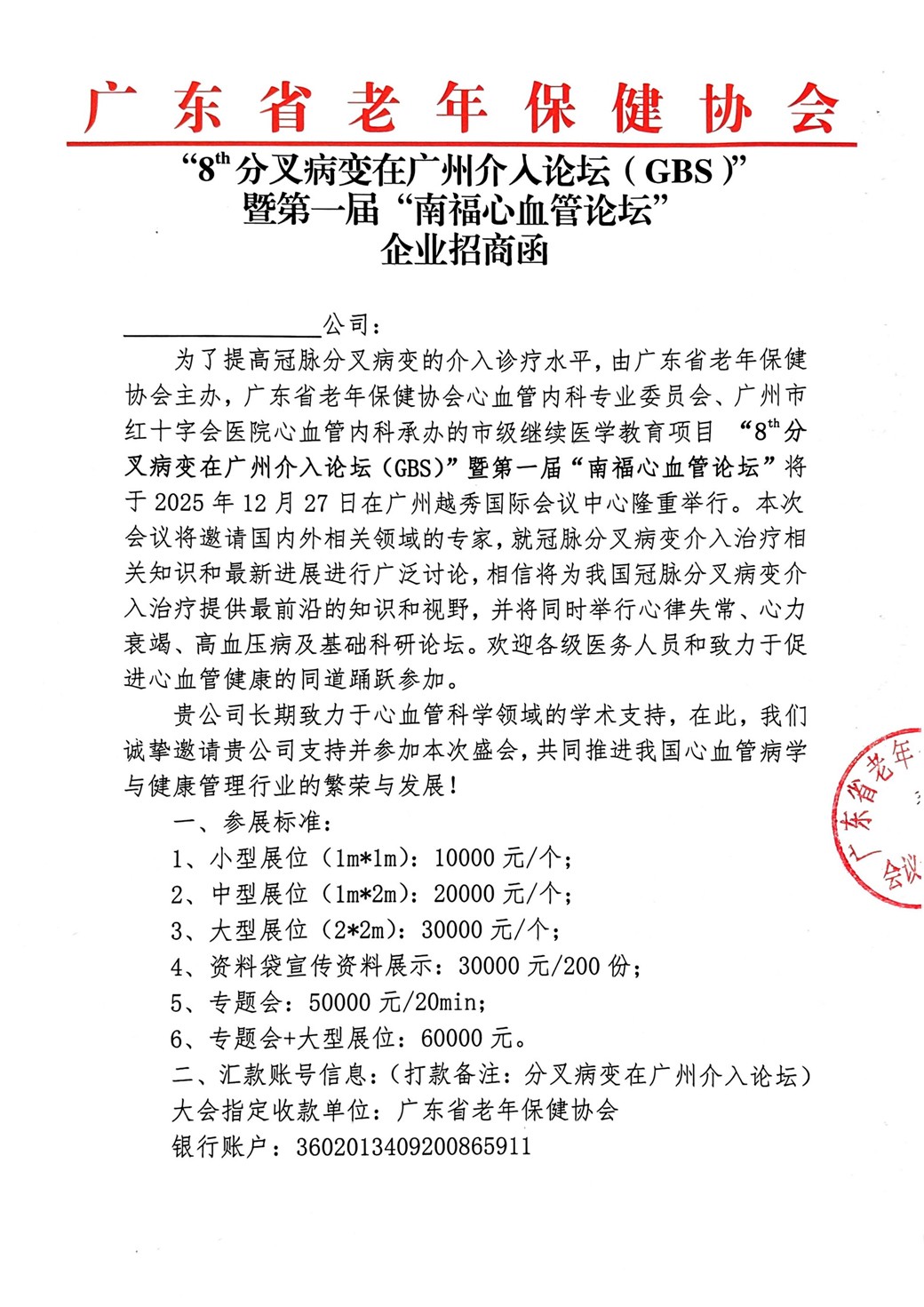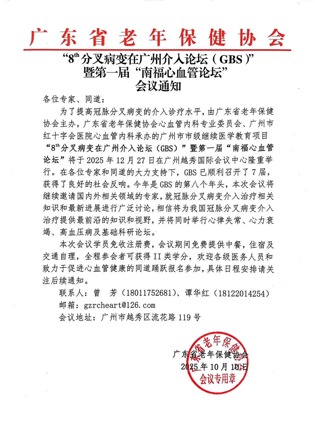 "8分叉病变在广州介入论坛(GBS)"暨第一届“南福心血管论坛”会议通知及招商函