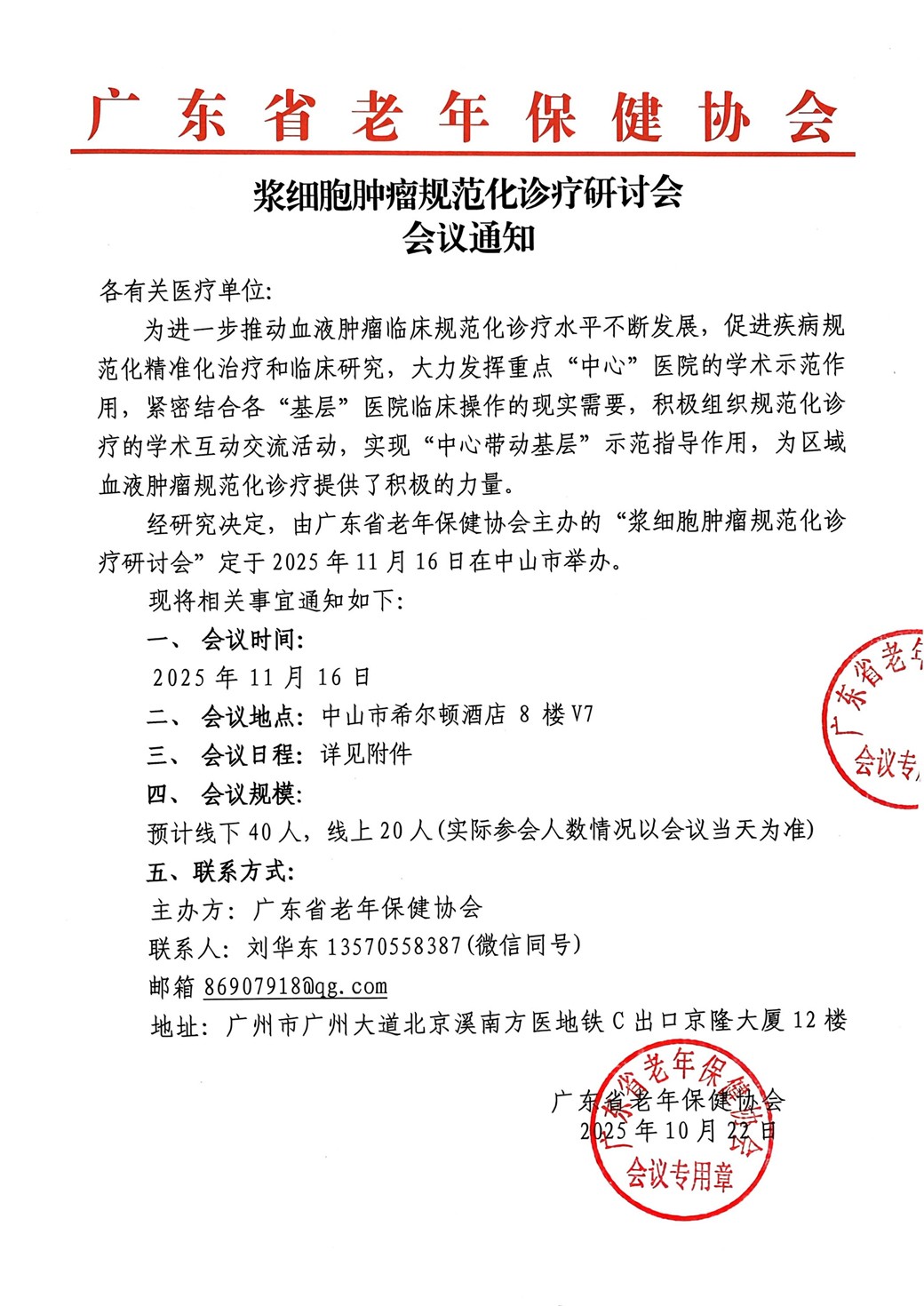 浆细胞肿瘤规范化诊疗研讨会会议通知