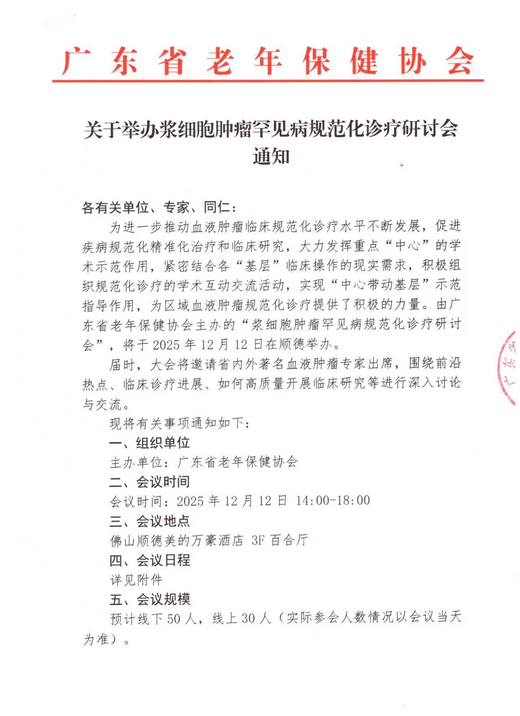 关于举办浆细胞肿瘤罕见病规范化诊疗研讨会通知