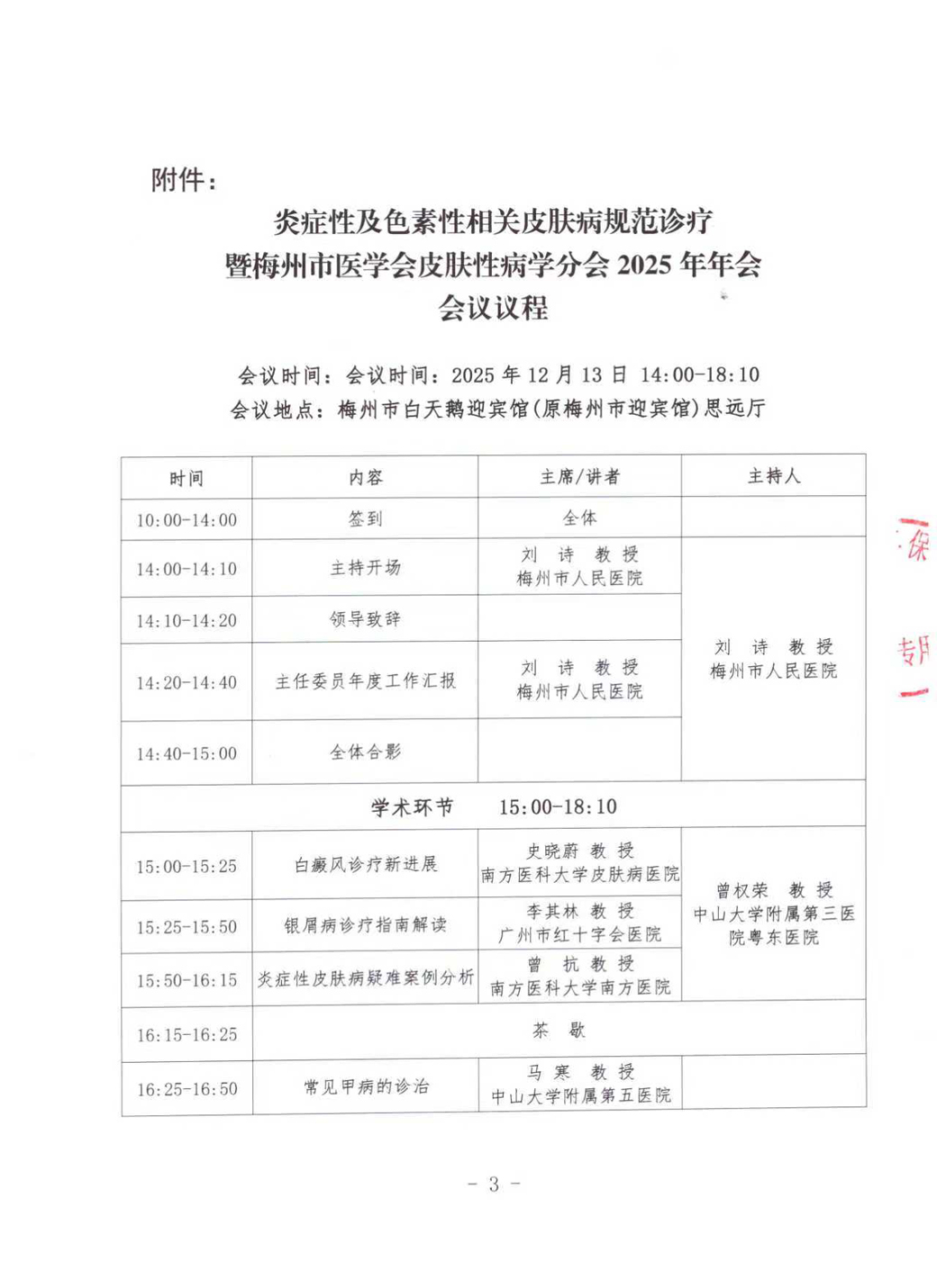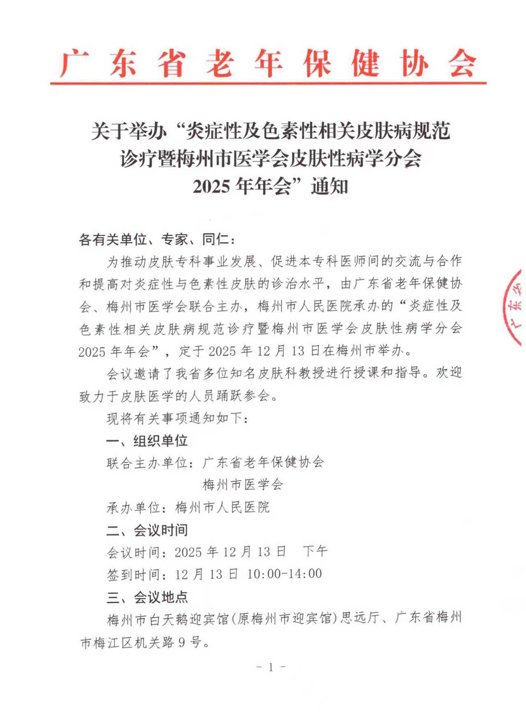 关于举办“炎症性及色素性相关皮肤病规范诊疗暨梅州市医学会皮肤性病学分会2025年年会”通知