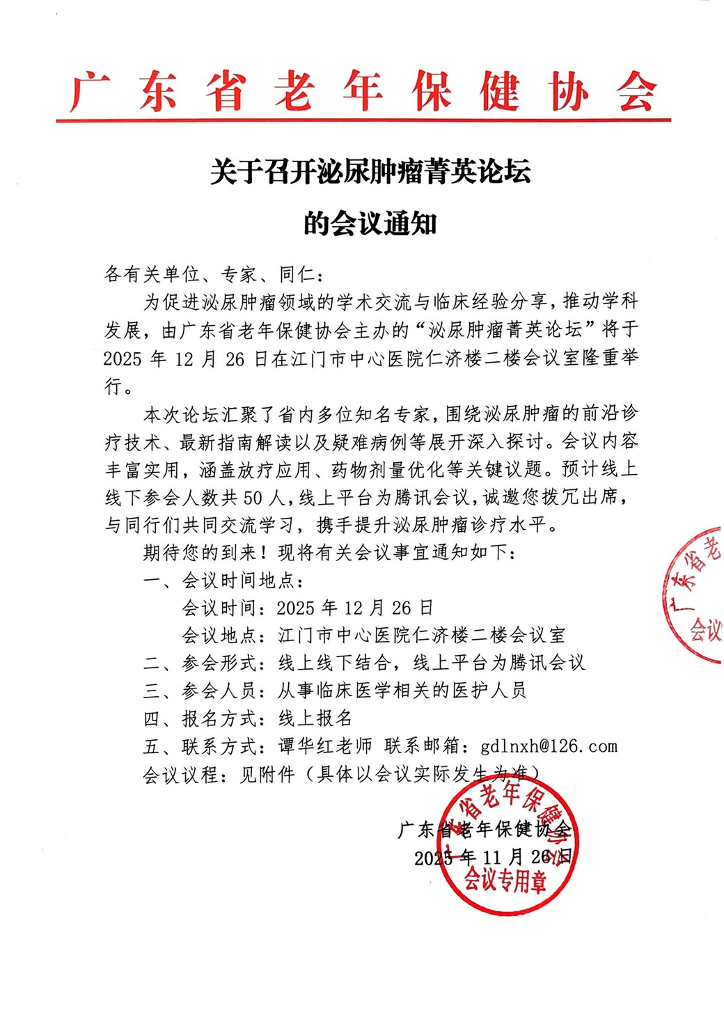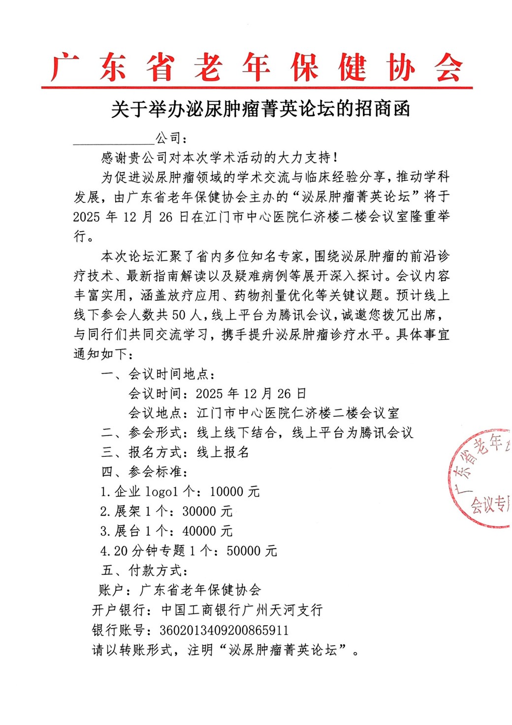 关于召开泌尿肿瘤菁英论坛的会议通知及招商函