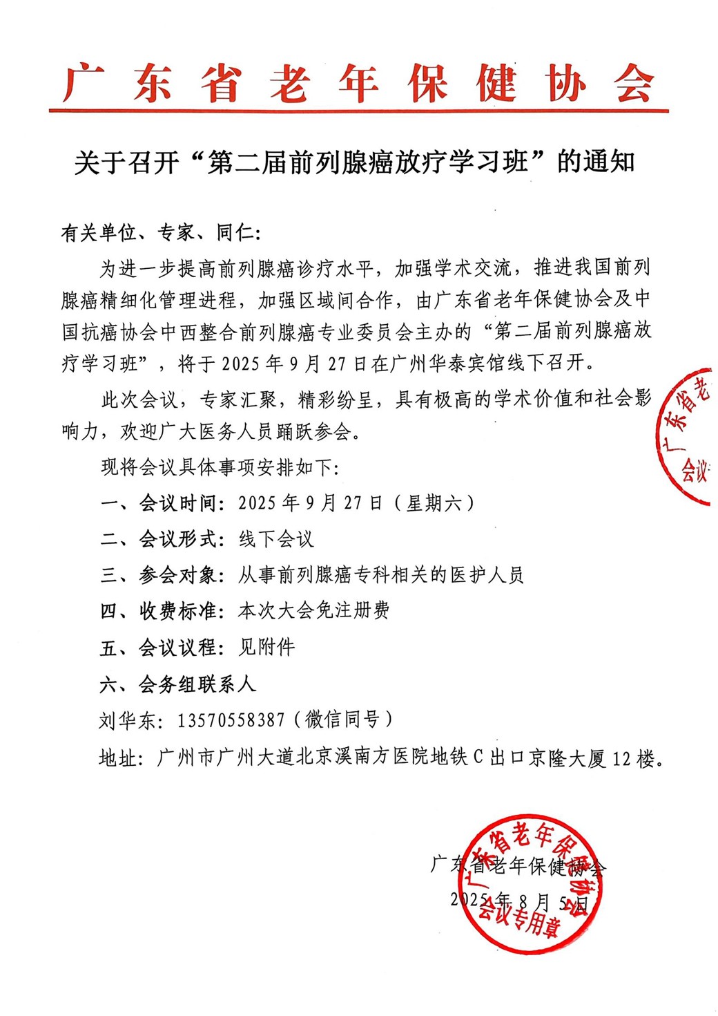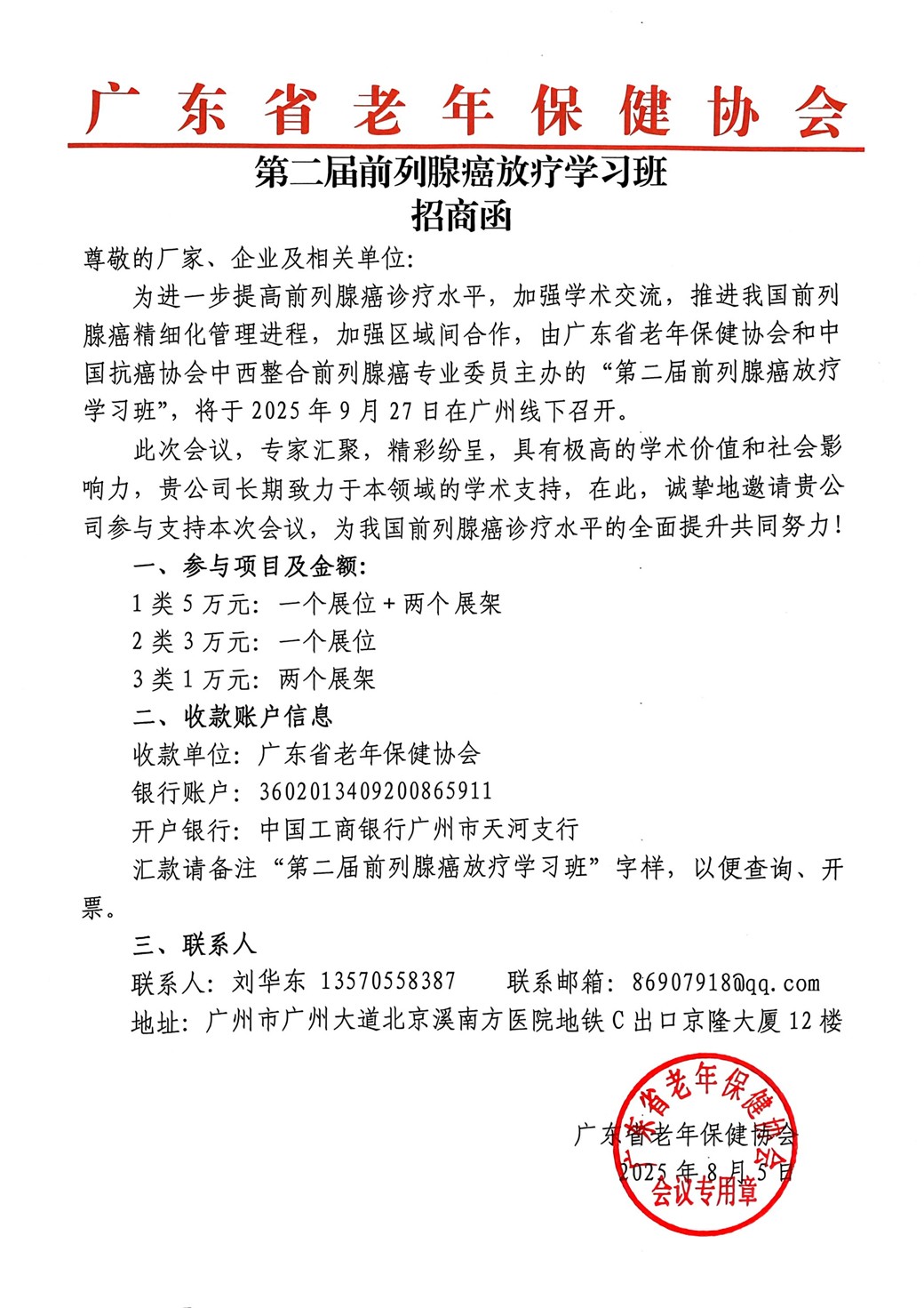 关于召开第二届前列腺癌放疗学习班的通知及招商函