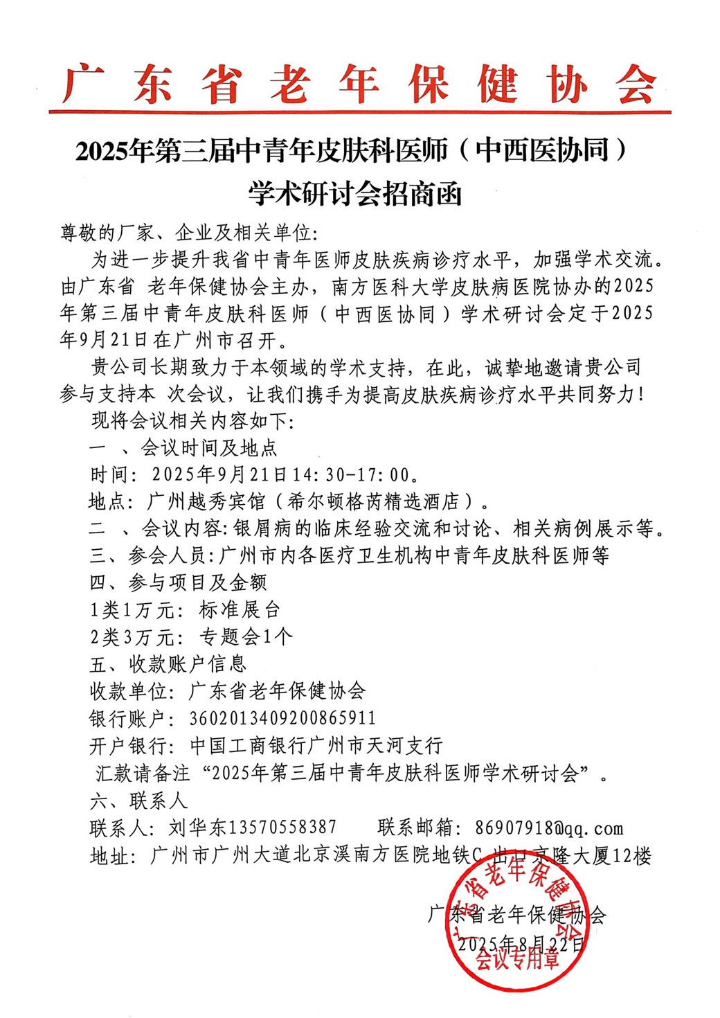 2025年第三届中青年皮肤科医师(中西医协同)学术研讨会通知及招商函