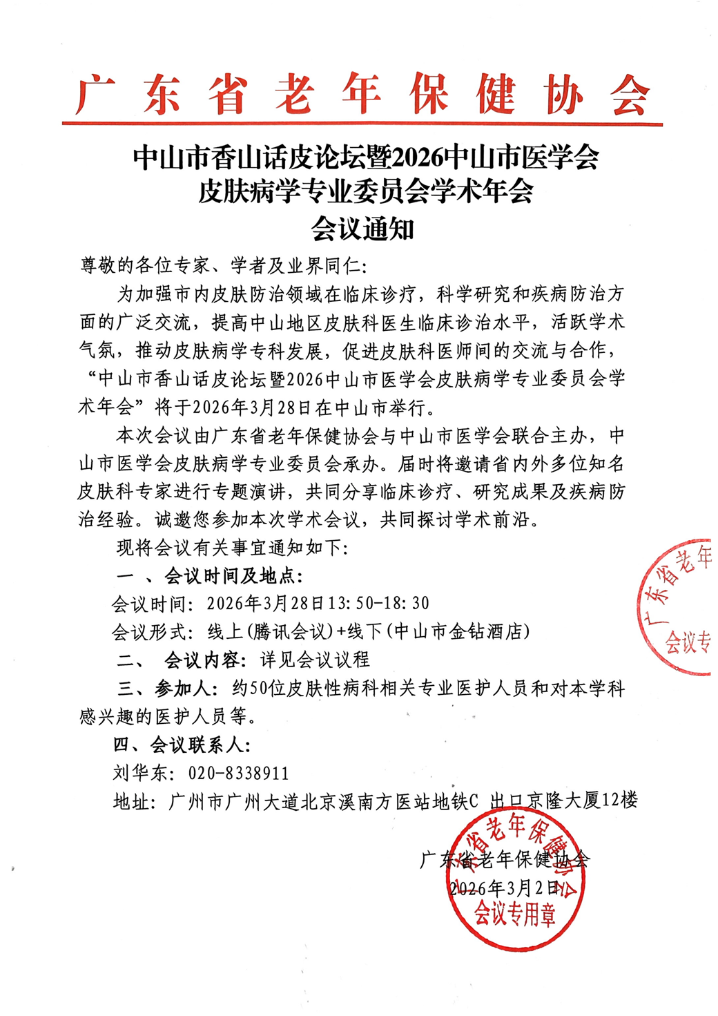 中山市香山话皮论坛暨2026中山市医学会皮肤病学专业委员会学术年会通知